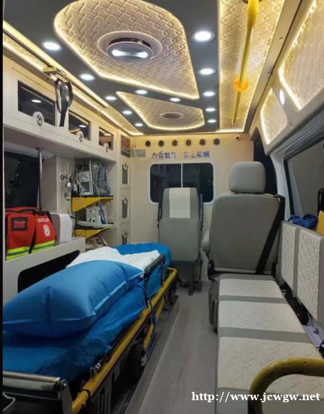 4、救护设施齐全,有经验丰富的随车救护人员,服务贴心的护士,每台车内均配备豪华担架床、大容量氧气瓶、自动吸痰机、全自动多功 能呼吸机、多参数心电监护仪、骨科专用气垫等专业设备。